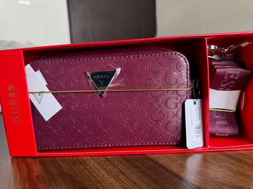 Billetera Guess Logo Embossed Gift Set Burgundy
